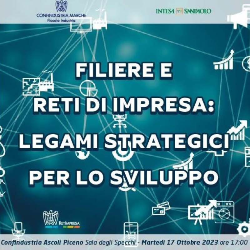 Martedì 17 ottobre alle ore 17:00 si terrà l’evento “Filiere e reti di impresa: legami strategici per lo sviluppo” presso Confindustria Ascoli Piceno, organizzato da La Piccola Industria di Confindustria Marche e Intesa Sanpaolo.