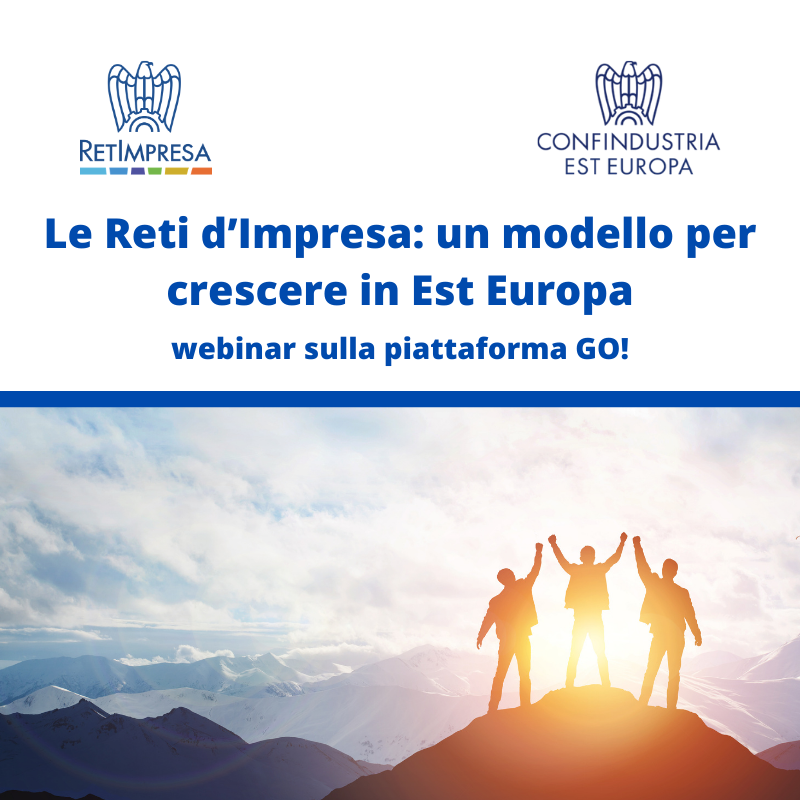 Il 23 aprile 2021, h.14;30, sulla piattaforma GO! di Confindustria, si è tenuto il webinar “Le reti d’Impresa: un modello per crescere in Est Europa” organizzato da Confindustria Est Europa e RetImpresa, con la collaborazione di UniCredit.